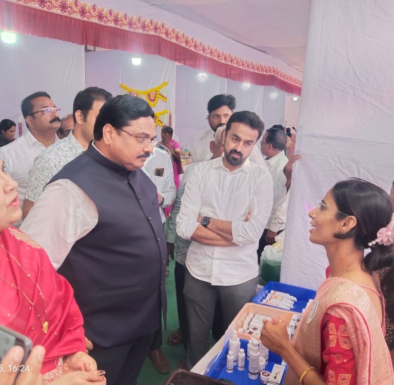 या कार्यक्रमात अनेक प्रतिष्ठित व मान्यवर सरकारी अधिकारी आमच्या स्टॉलला भेट देऊन प्रोत्साहन दिले. परंतु सर्वांत डोळ्यात भरणारा क्षण होता, जेव्हा जिल्हाधिकारी श्री. अशोक काकडे सर व त्यांच्या पत्नींनी आमच्या स्टॉलला भेट दिली. त्यांनी आमच्या उत्पादनांची माहिती घेतली, आमच्या प्रयत्नांचे कौतुक केले आणि महिलांच्या स्वावलंबनासाठी घेतलेल्या पुढाकाराचे मनापासून अभिनंदन केले.