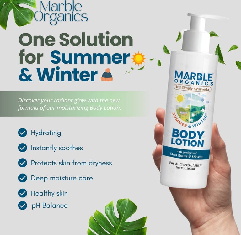 In conclusion, investing in a high-quality body lotion like Maarble Organics, rich in shea butter and Olivem, is crucial for maintaining hydrated, glowing skin all year round. Your skin deserves the best care, and with Maarble Organics, you can nurture it naturally and effectively.